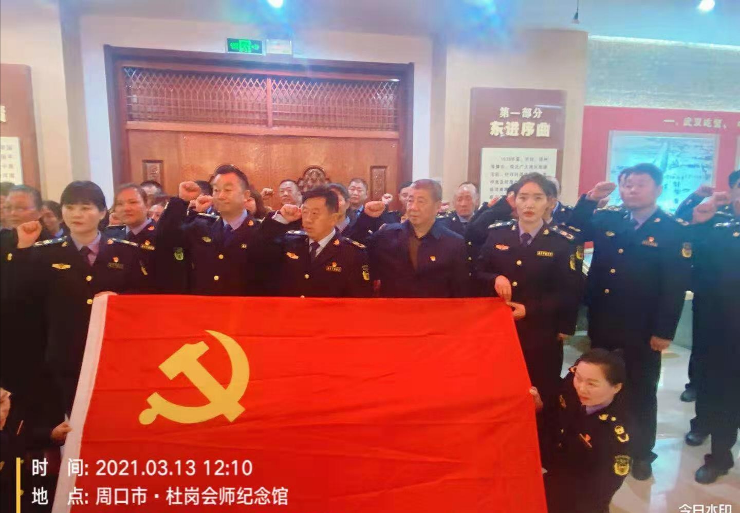 在杜崗會(huì)師紀(jì)念館,管理員朱建璽用樸實(shí)的話(huà)語(yǔ)為分局全體中層干部上了一堂生動(dòng)的黨課。分局黨組書(shū)記李紅旗和參加教育活動(dòng)的全體人員在一塊塊展板前深情駐足,認(rèn)真聆聽(tīng)管理員的講解,接受革命洗禮。面對(duì)革命先烈一次次豐功偉績(jī),全體人員再次舉起右手,重溫入黨誓詞,他們莊嚴(yán)宣誓,鏗鏘有力,堅(jiān)決用實(shí)際行動(dòng)奮進(jìn)新征程。