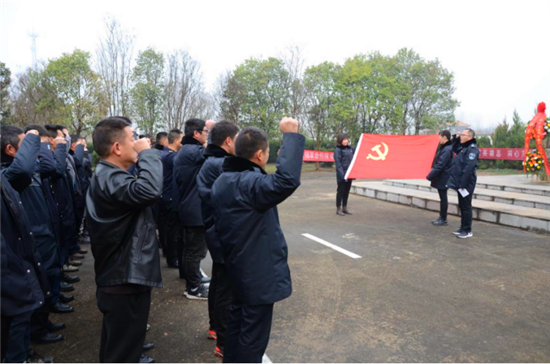 在鮮艷的黨旗下,全體黨員莊嚴(yán)舉起右手,重溫入黨誓詞。隨后,全體黨員繞烈士紀(jì)念碑緩緩而行,瞻仰先烈,觀(guān)看烈士墓志銘。