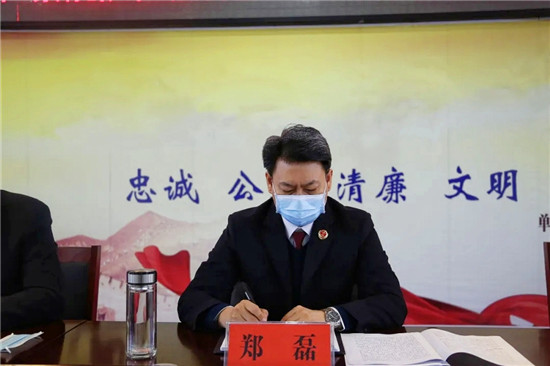 院黨組書記、代檢察長(zhǎng)陸智明作動(dòng)員講話。駐點(diǎn)指導(dǎo)組檢察專班組組長(zhǎng)、省檢察院第五檢察部副主任鄭磊,駐點(diǎn)指導(dǎo)組檢察專班成員、洛陽鐵檢院紀(jì)檢組組長(zhǎng)丁春杰到會(huì)指導(dǎo)。市檢察院政治部副主任劉建軍、縣委政法委副書記徐素梅出席會(huì)議。會(huì)議由院黨組成員、副檢察長(zhǎng)馬立強(qiáng)主持。全體干警參加會(huì)議。