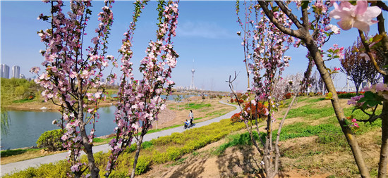 近日,在春花和藍(lán)天碧水映襯下,沙潁河兩岸桃花、海棠、石楠、櫻桃花競相綻放,沙潁河兩岸美如畫。