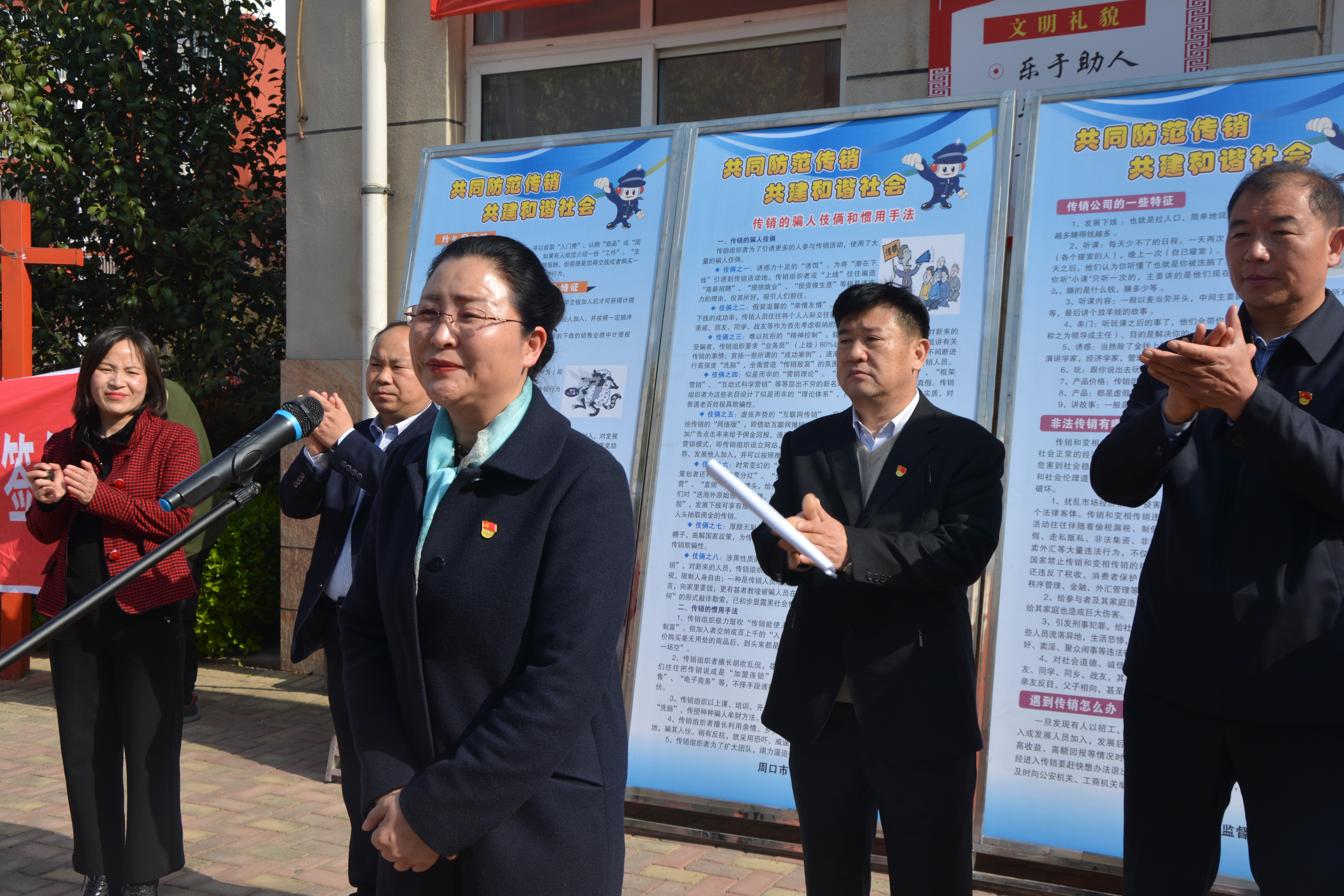 市市場監(jiān)管局二級高級主辦王樹平在啟動儀式上強調(diào),禁止傳銷是全社會責(zé)任。市場監(jiān)管部門要充分發(fā)揮職能作用,重拳出擊,嚴(yán)厲打擊傳銷違法行為。積極開展線下涉?zhèn)骶€索排查處置,加大新型網(wǎng)絡(luò)傳銷打擊力度,廣泛開展無傳銷創(chuàng)建工作。打擊傳銷工作既要注重打擊懲處,又要注重日常監(jiān)管,做到打、防、控同步推進,不斷鞏固打擊成果。港區(qū)分局要堅決落實“四個最嚴(yán)”要求,守住安全底線,加大打擊傳銷工作力度,創(chuàng)新監(jiān)管執(zhí)法方式,提高監(jiān)管效能,守市監(jiān)初心,擔(dān)發(fā)展使命,服務(wù)現(xiàn)代化生態(tài)新港城,為平安港區(qū)建設(shè)貢獻市場監(jiān)管力量。港區(qū)打擊傳銷工作領(lǐng)導(dǎo)小組組長、黨委委員、紀(jì)委書記李素芹同志宣布周口港區(qū)創(chuàng)建無傳銷社區(qū)活動啟動。