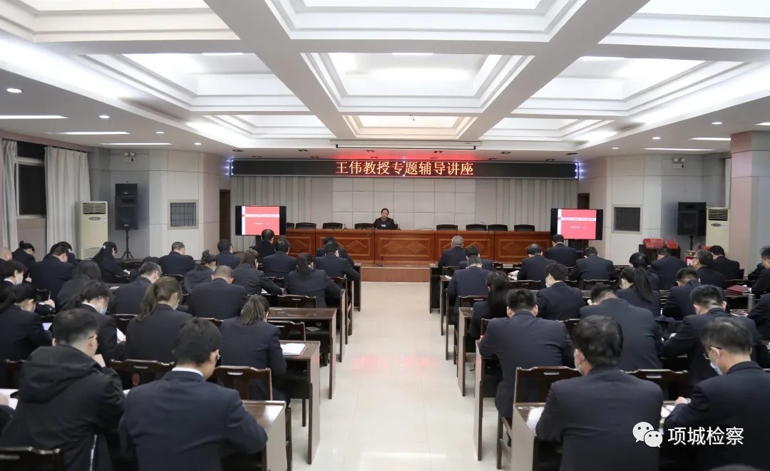 為推動(dòng)檢察隊(duì)伍教育整頓學(xué)習(xí)教育環(huán)節(jié)往深里走、往實(shí)里去,3月22日晚,項(xiàng)城市檢察院邀請(qǐng)周口市委黨校副教授王偉到“檢察夜?!睘楦删M(jìn)行黨建知識(shí)專題講座,夯實(shí)政治教育根基,提升干警思想政治素質(zhì)。王偉以《以黨建引領(lǐng)檢察工作高質(zhì)量發(fā)展》為題,從“背景闡釋:深刻認(rèn)識(shí)黨建時(shí)代內(nèi)涵”、“歷史演進(jìn):準(zhǔn)確把握基層組織作用”“路徑拓展:科學(xué)理解基層黨建手段”、“強(qiáng)發(fā)展、協(xié)調(diào)發(fā)展、高質(zhì)量發(fā)展。 王偉邊講解邊播放ppt課件。其報(bào)告主題鮮明、邏輯清晰,內(nèi)容豐富、語言生動(dòng),旁征博引、貫古通今,深入淺出、通俗易懂,讓干警美美享受一堂黨建教育“大餐”。