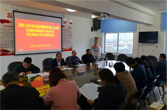 為貫徹落實行政執(zhí)法責(zé)任制,深入開展河南省行政執(zhí)法責(zé)任制示范點工作,3月31日,周口市市場監(jiān)管局港區(qū)分局召開創(chuàng)建河南省行政執(zhí)法責(zé)任制示范點推進(jìn)會,港區(qū)分局全體干部職工參加會議。