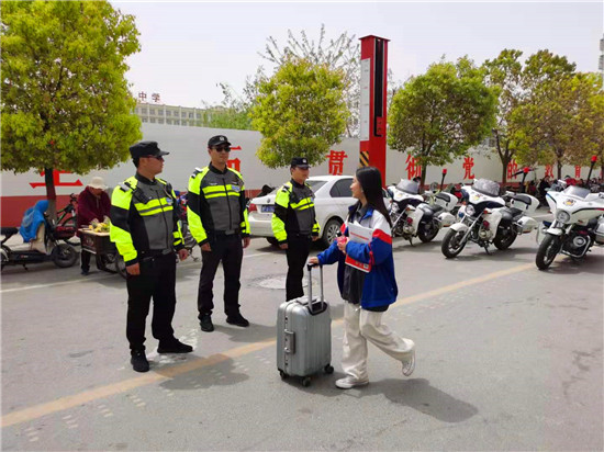 在七八年級到九年級段集中離校的兩天時間內(nèi),縣交警大隊鐵騎中隊負責(zé)人何濤帶領(lǐng)執(zhí)勤民警一直堅守在學(xué)校周邊執(zhí)勤崗位,全身心的投入工作,加強交通疏導(dǎo),分流過往車輛,并向?qū)W生和家長宣傳交通安全常識,確保學(xué)生和家長平安回家。他們站在路口和車流中認真執(zhí)勤,指揮車輛有序通行,耐心勸導(dǎo)車輛繞道,接受過往司機咨詢,及時疏導(dǎo)易堵路段,一直堅持到全部學(xué)生、家長離校才收隊撤離,以實際行動保障了數(shù)千名學(xué)生的平穩(wěn)、安全、有序離校,在學(xué)生家長中間產(chǎn)生了積極的影響,贏得了家長學(xué)生的一致贊賞,以安全護航保師生平安,切實實現(xiàn)了讓家長放心,學(xué)生舒心的良好社會效應(yīng)。②2