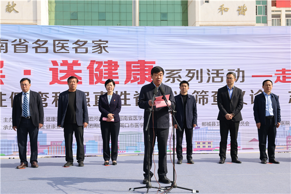 河南省衛(wèi)健委副主任劉延軍,光明日?qǐng)?bào)社河南站站長(zhǎng)王勝昔,省衛(wèi)健委宣傳處處長(zhǎng)楊力勇,省醫(yī)學(xué)會(huì)副會(huì)長(zhǎng)兼秘書(shū)長(zhǎng)王偉,省人民醫(yī)院副院長(zhǎng)張連仲,團(tuán)河南省委學(xué)校部副部長(zhǎng)張艷斌,省骨科學(xué)會(huì)主任委員、省人民醫(yī)院脊柱脊髓外科主任高延征,周口市人大常委會(huì)副主任、鄲城縣委書(shū)記羅文閣,周口市副市長(zhǎng)秦勝軍,市衛(wèi)健委主任金玉貞,鄲城縣副縣長(zhǎng)張凱,縣衛(wèi)健委主任付登霄,縣人民醫(yī)院院長(zhǎng)于健,縣教體局局長(zhǎng)羅明黨等出席啟動(dòng)儀式。儀式由鄲城縣人民政府縣長(zhǎng)李全林主持。
