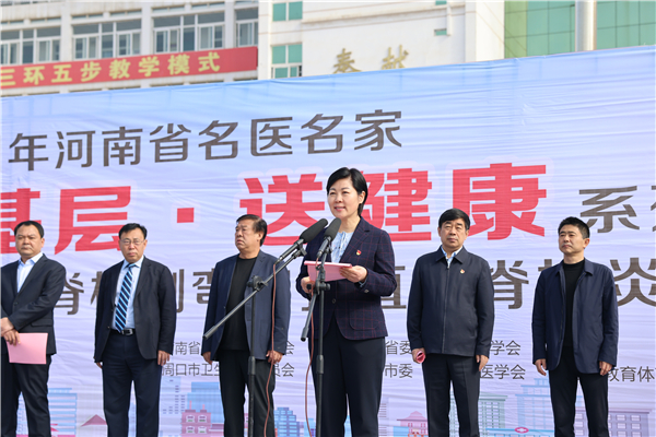 羅文閣致歡迎詞。她說(shuō),只有全民健康才有全面小康。今天,河南省在校青少年脊柱側(cè)彎和強(qiáng)直性脊柱炎篩查義診活動(dòng)走進(jìn)鄲城,對(duì)鄲城孩子們的健康成長(zhǎng)是件好事、實(shí)事,我們將全力以赴,做好配合,爭(zhēng)取讓項(xiàng)目惠及更多患者,同時(shí)希望全縣廣大醫(yī)護(hù)工作者以這次活動(dòng)為契機(jī),珍惜難得的學(xué)習(xí)機(jī)會(huì),從名醫(yī)名家身上,學(xué)習(xí)出類(lèi)拔萃的醫(yī)療技術(shù)、德藝雙馨的大醫(yī)情懷、心系群眾的高尚情操、不辭勞苦的敬業(yè)精神,不忘初心、牢記使命,勤學(xué)苦練、提升本領(lǐng),為鄲城創(chuàng)建國(guó)家健康縣城、做好鞏固拓展脫貧攻堅(jiān)成果同鄉(xiāng)村振興有效銜接作出更大貢獻(xiàn)。