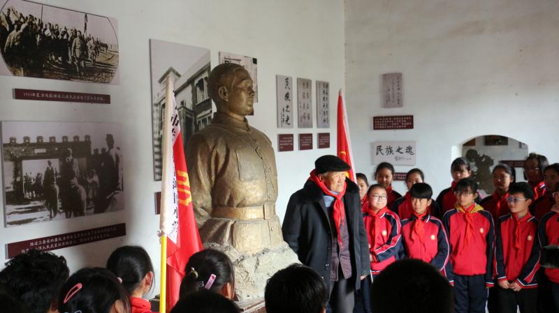 在全國(guó)上下掀起黨史學(xué)習(xí)教育熱潮之際,近日,來(lái)自吉鴻昌小學(xué)六(1)班的30名孩子,在學(xué)校少先隊(duì)輔導(dǎo)員的帶領(lǐng)下來(lái)到呂潭學(xué)校舊址,開(kāi)展主題為“弘揚(yáng)鴻昌精神、傳承紅色基因”的主題隊(duì)會(huì)活動(dòng),參觀了吉鴻昌學(xué)校和吉鴻昌故居,循著英雄的足跡,親身感受吉鴻昌精神的內(nèi)涵,接受一場(chǎng)紅色的精神洗禮。期間,在吉鴻昌將軍塑像前,何國(guó)志老人生動(dòng)地講解了吉鴻昌將軍親手?jǐn)捞弥丁?chuàng)辦吉鴻昌學(xué)校、首次向中國(guó)人介紹電視等身前事跡,在場(chǎng)的孩子感動(dòng)得熱淚盈眶。 “聽(tīng)了何爺爺?shù)闹v述,我被吉鴻昌將軍的事跡深深感動(dòng),長(zhǎng)大后也要成為一名像他一樣的人!”張晨曦同學(xué)說(shuō)。
