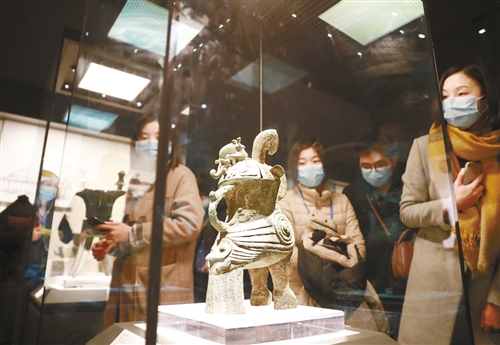 觀眾在河南博物院參觀。近年來,河南不斷優(yōu)化文化產(chǎn)業(yè)發(fā)展環(huán)境,激發(fā)市場活力,文化產(chǎn)業(yè)呈現(xiàn)良好發(fā)展態(tài)勢。 聶冬晗攝(中經(jīng)視覺)