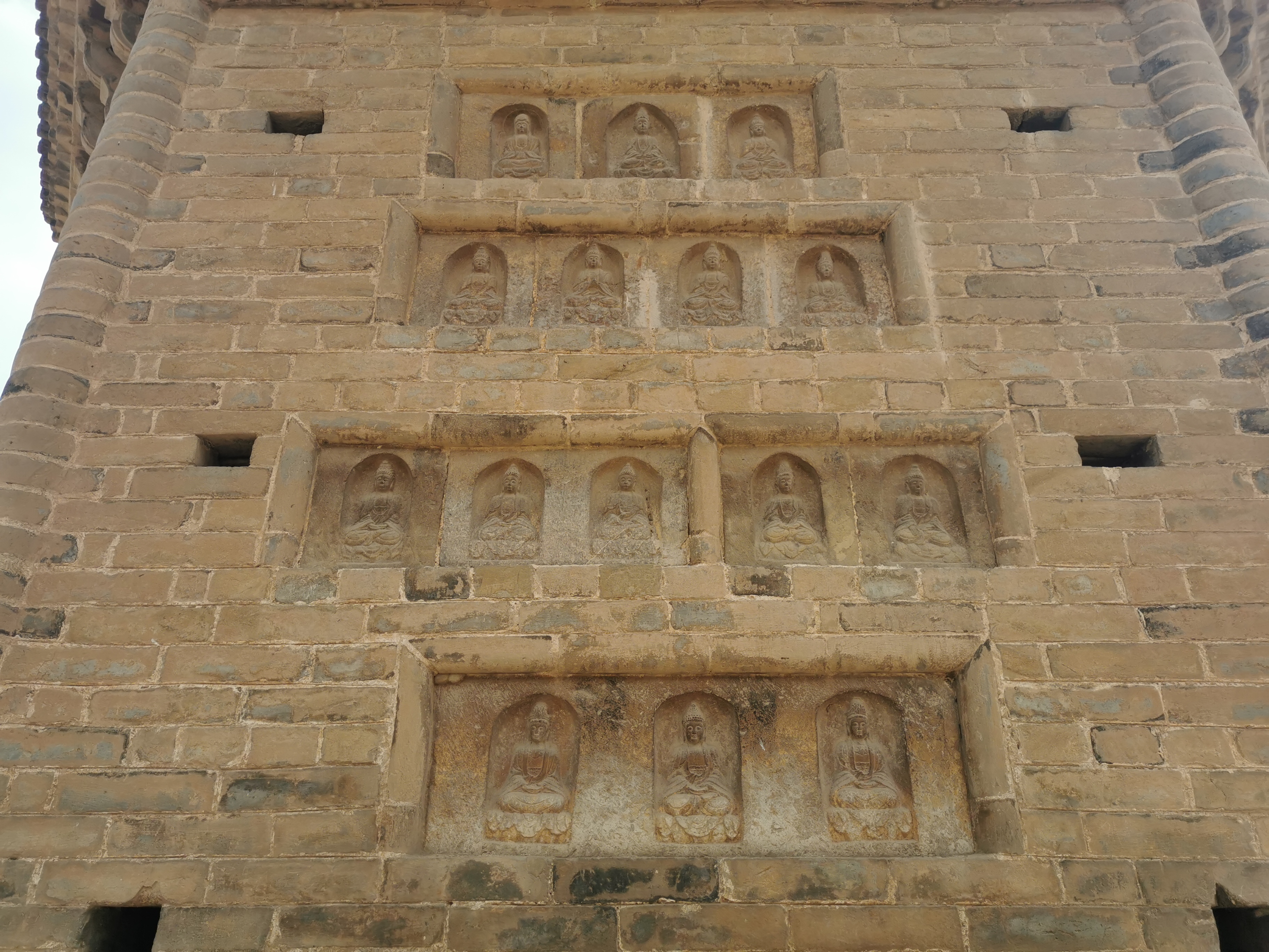 周建山說,唐朝經(jīng)兩宋至遼金時期,是我國古塔發(fā)展的高峰時期。唐宋時期古塔的建筑達到了空前繁榮的程度。首先從建筑年代看,兩塔都始建于重文輕武的北宋時期。當時社會經(jīng)濟繁榮,文化相對發(fā)達,佛教深入社會生活的各個方面,寺院、佛塔等佛教建筑也遍布各地。二是從建筑關(guān)系看,都曾是當時著名寺院——壽圣寺建筑群的重要組成部分,后來寺毀而塔存,塔也因寺而得名。三是從建筑藝術(shù)看,都具有很高的科學(xué)價值。這兩座塔都經(jīng)過了精心設(shè)計,地基穩(wěn)固,結(jié)構(gòu)嚴謹,頗具匠心。特別是商水壽圣寺塔在同類建筑中,樣式別具一格,不僅形體高大,而且施有平座、券門、斗拱、破子欞假窗和剎柱,還有建塔題記等,具有重要的文物價值。四是從佛教藝術(shù)看,都體現(xiàn)了當時高超的造像藝術(shù)水平。商水壽圣寺塔室內(nèi)嵌砌有3尊石雕佛像,太康壽圣寺塔身鑲嵌有211尊石雕佛像,這些佛教藝術(shù)造像,莊嚴慈祥,栩栩如生。五是從佛教發(fā)展歷程看,對研究佛教文化及其傳播具有一定的歷史價值。北宋和明代,統(tǒng)治階級都重視佛教,佛教文化相當興盛。這兩座塔都始建于宋、重建于明,就是這種歷史背景下的產(chǎn)物,對佛教文化在豫東大地的傳播,具有實證價值。