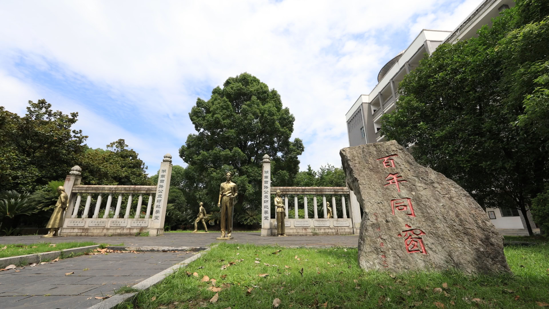 圖2:常德市一中內(nèi)百年同窗文化景觀。常德日?qǐng)?bào)社記者 馮順前 攝