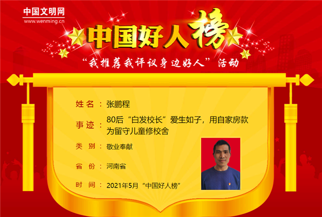 今日起,“網(wǎng)信周口”微信公眾號將陸續(xù)展示“周口青年好網(wǎng)民”故事,敬請關(guān)注。今天推出第一期《張鵬程:80后白發(fā)“校長爺爺”,背后故事暖人心》