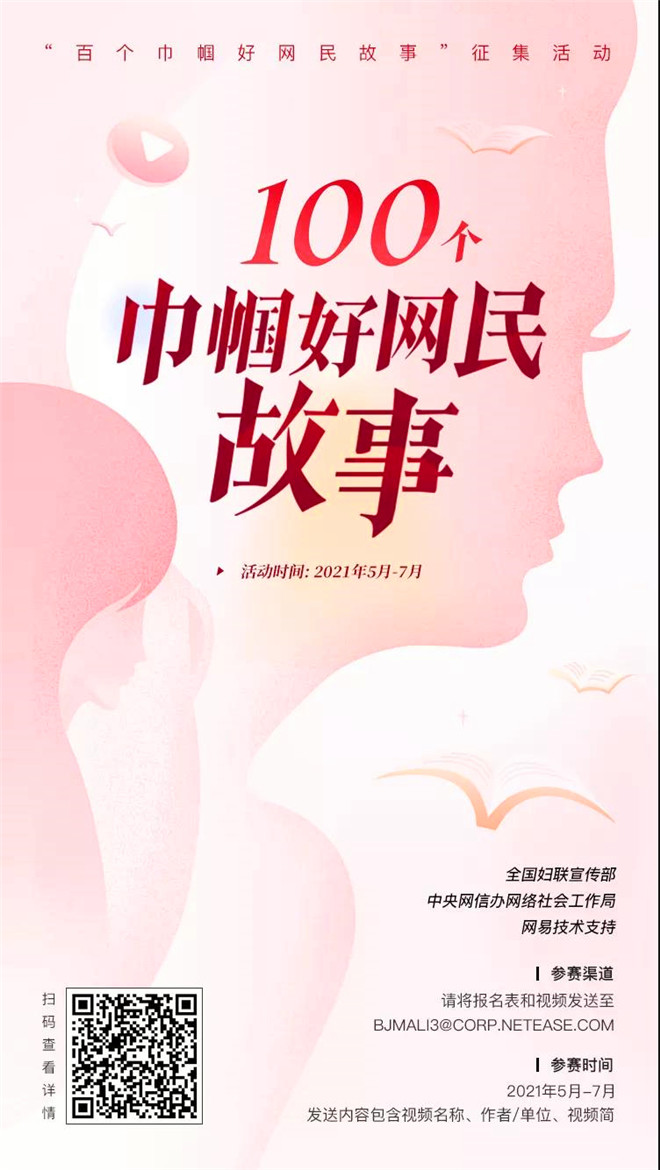 “百個巾幗好網民故事”推選條件:故事必須正面真實,主人公原型為年滿18周歲以上的女性,要求政治立場堅定,事跡突出。要求故事主要以短視頻形式呈現,時長為三分鐘左右。重點征集五種類型的優(yōu)秀故事: