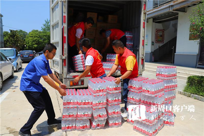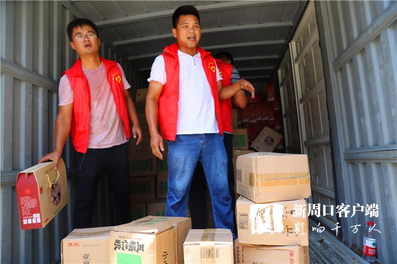 當天中午,掛著印有“昨天大家助我脫貧,今天我為救災出力!”條幅的防汛救災物資運輸車抵達周口港區(qū)?!耙皇乔皟商旆烙_風‘煙花’,我們早就來了。”隆古村黨支部書記段長春一下車就連忙慰問眾人。一同前往的還有6位年輕力壯的志愿者,他們不辭勞苦,和港區(qū)消防、城管人員一起頂著烈日,用了半個多小時將滿車物資搬運到位。