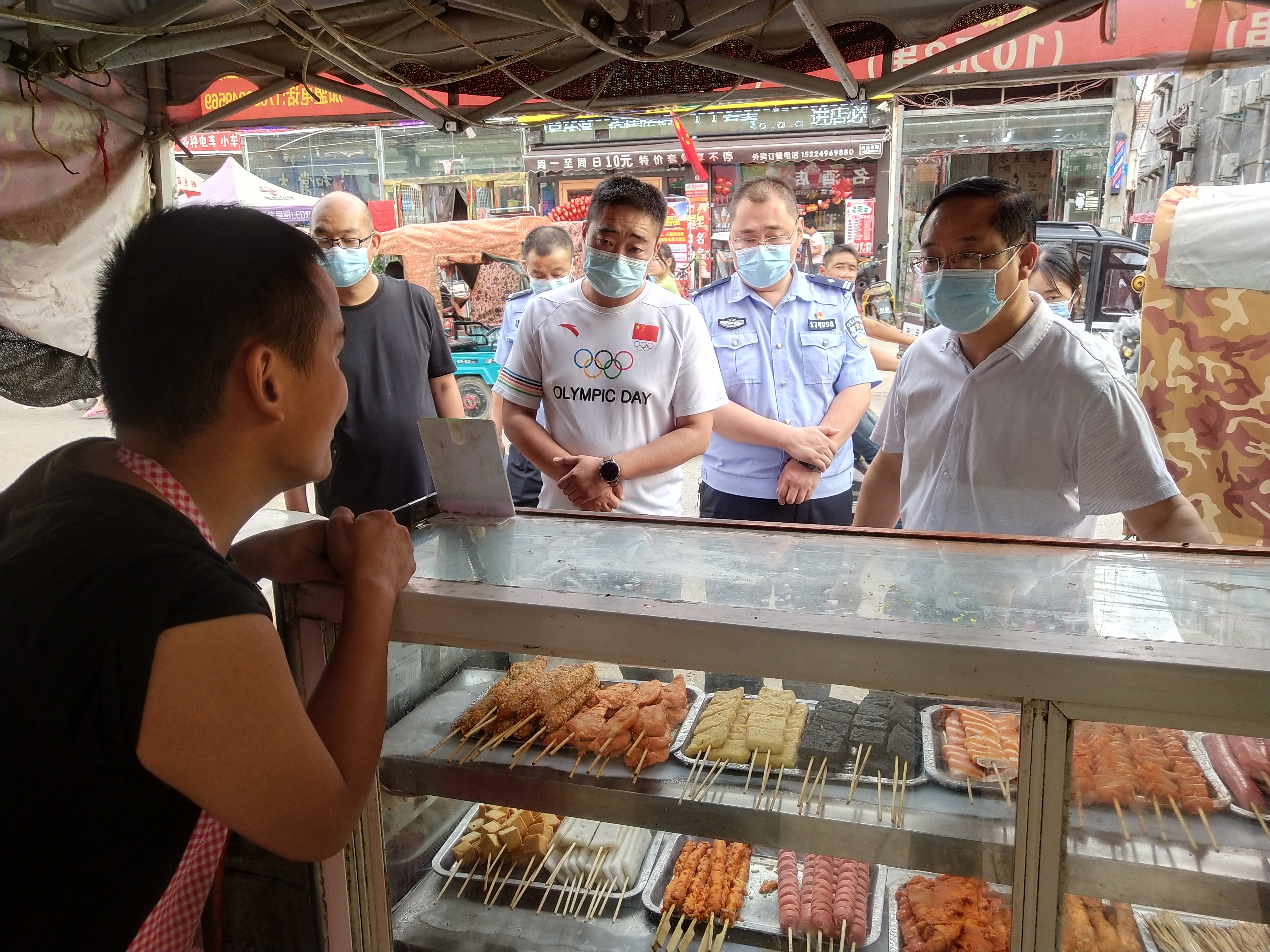 “你們這個超市經(jīng)營面積多少?配備多少消防栓、滅火器?有幾個逃生通道?員工是否熟知消防安全常識?油炸熟食肉類食品是如何保障質(zhì)量的……”“咱樓上樓下營業(yè)面積共2000平方米,配備20個消防栓、60個滅火器,有2個逃生通道,每周都對員工進行消防安全演練,每一批食品都有檢測報告……”10月1日下午,商水縣平店鄉(xiāng)黨委書記段文海、鄉(xiāng)長位望喜、主管安全生產(chǎn)的副鄉(xiāng)長劉春苗帶隊,組織鄉(xiāng)派出所、市場監(jiān)督所相關(guān)人員到安全生產(chǎn)重點場所“萬果園超市90號”連鎖店開展國慶節(jié)安全生產(chǎn)暗訪檢查,超市負責人呂四偉詳細介紹了安全經(jīng)營情況。