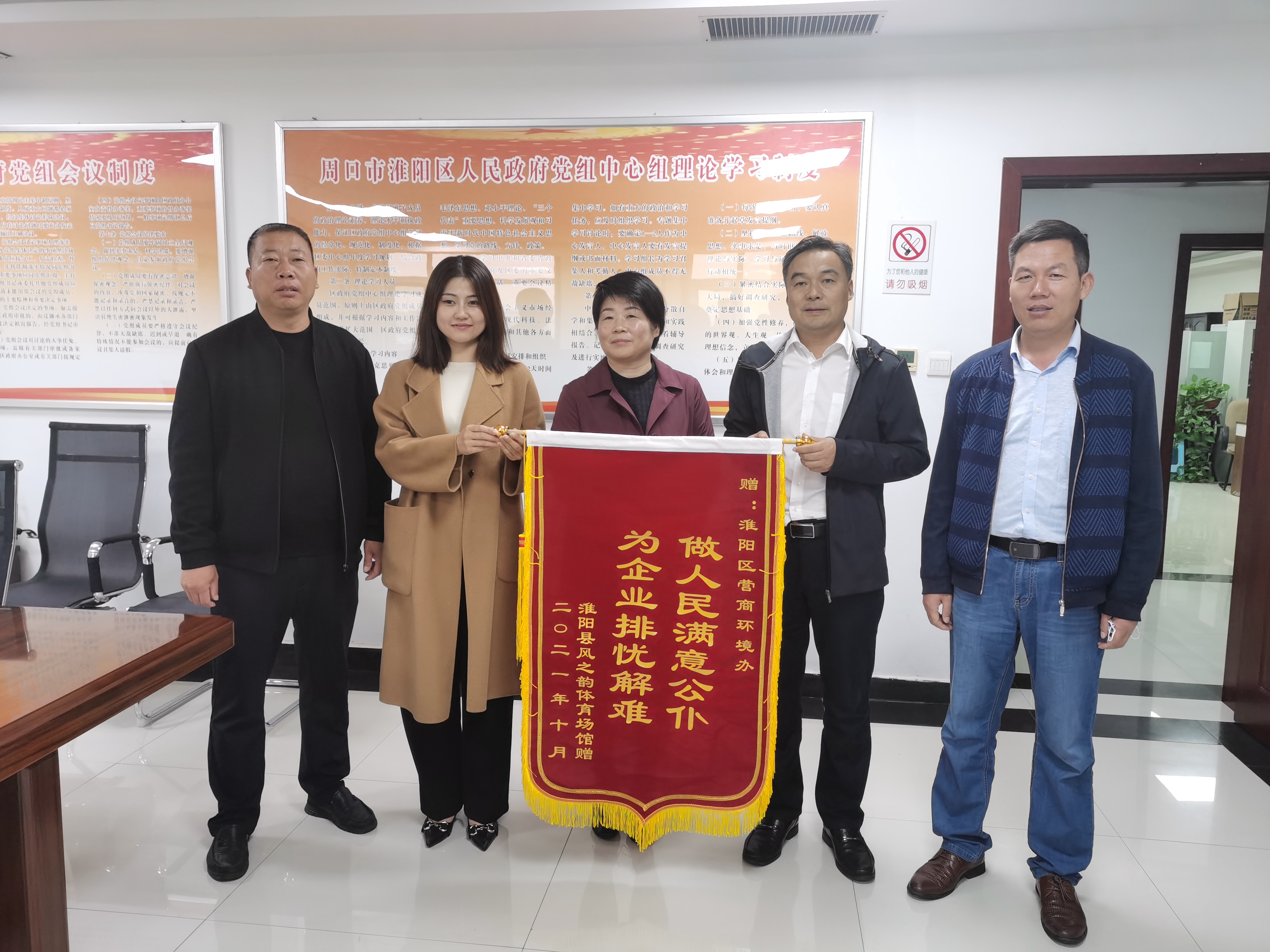 10月8日下午,淮陽區(qū)風之韻體育館負責人把一面印著“做人民滿意公仆 為企業(yè)排憂解難”的錦旗送到淮陽區(qū)優(yōu)化營商環(huán)境辦公室,對區(qū)營商辦協(xié)調(diào)職能部門容缺辦理,快速解決企業(yè)痛點難點問題表示感謝。