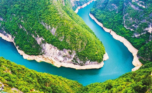 近年來,長(zhǎng)江重慶段生態(tài)環(huán)境持續(xù)改善。圖為位于長(zhǎng)江支流大寧河流域重慶市巫山縣小三峽滴翠峽的魚頭灣。 新華社記者 王全超攝
