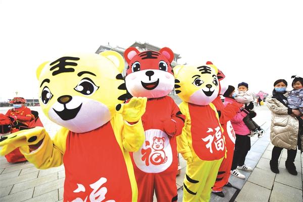 2月15日,幾名工作人員身穿萌虎造型服裝向市民招手。當(dāng)日,由市文化廣電和旅游局主辦,市文化館、市美術(shù)館、市圖書(shū)館承辦的“我們的節(jié)日‘元宵節(jié)’——周口市群眾文化系列活動(dòng)‘寅虎賀春鬧元宵’”在市文化藝術(shù)中心舉行。