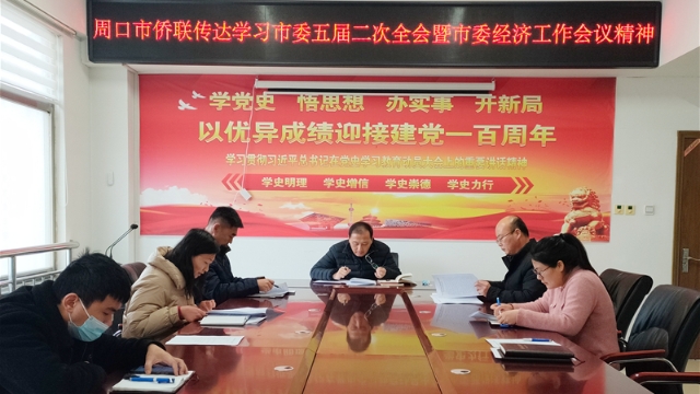 2月16日,周口市僑聯(lián)召開黨組(擴大)會議,傳達學習市委五屆二次全會暨市委經(jīng)濟工作會議精神,市僑聯(lián)黨組書記、主席馮連根主持會議。
