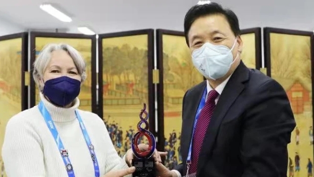 據(jù)北京冬奧組委消息,北京冬奧組委副主席楊樹安近日應(yīng)約在北京冬奧村會(huì)見美國(guó)奧委會(huì)與殘奧委會(huì)主席、美國(guó)冬奧代表團(tuán)團(tuán)長(zhǎng)萊昂斯,并代為接受美奧委會(huì)向北京冬奧組委主席蔡奇贈(zèng)予的榮譽(yù)獎(jiǎng)杯。