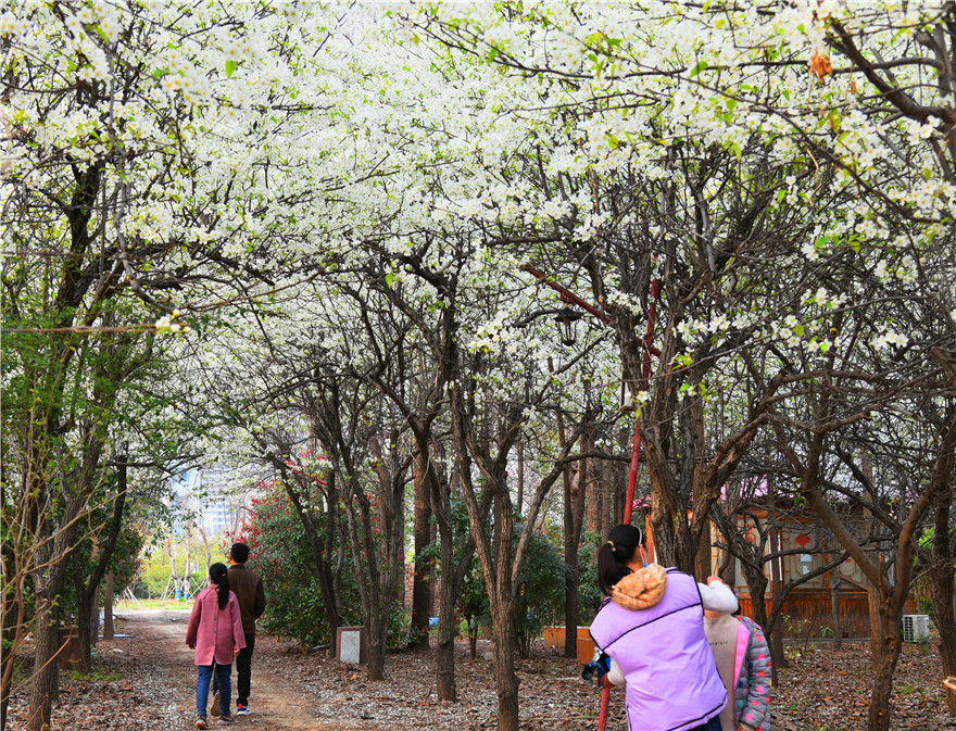 3月26日,周口市天氣晴好,植物園內(nèi)岸柳青青、鶯飛草長。園內(nèi)的梨花正是盛開時,不少市民在此駐足觀賞拍照。②8