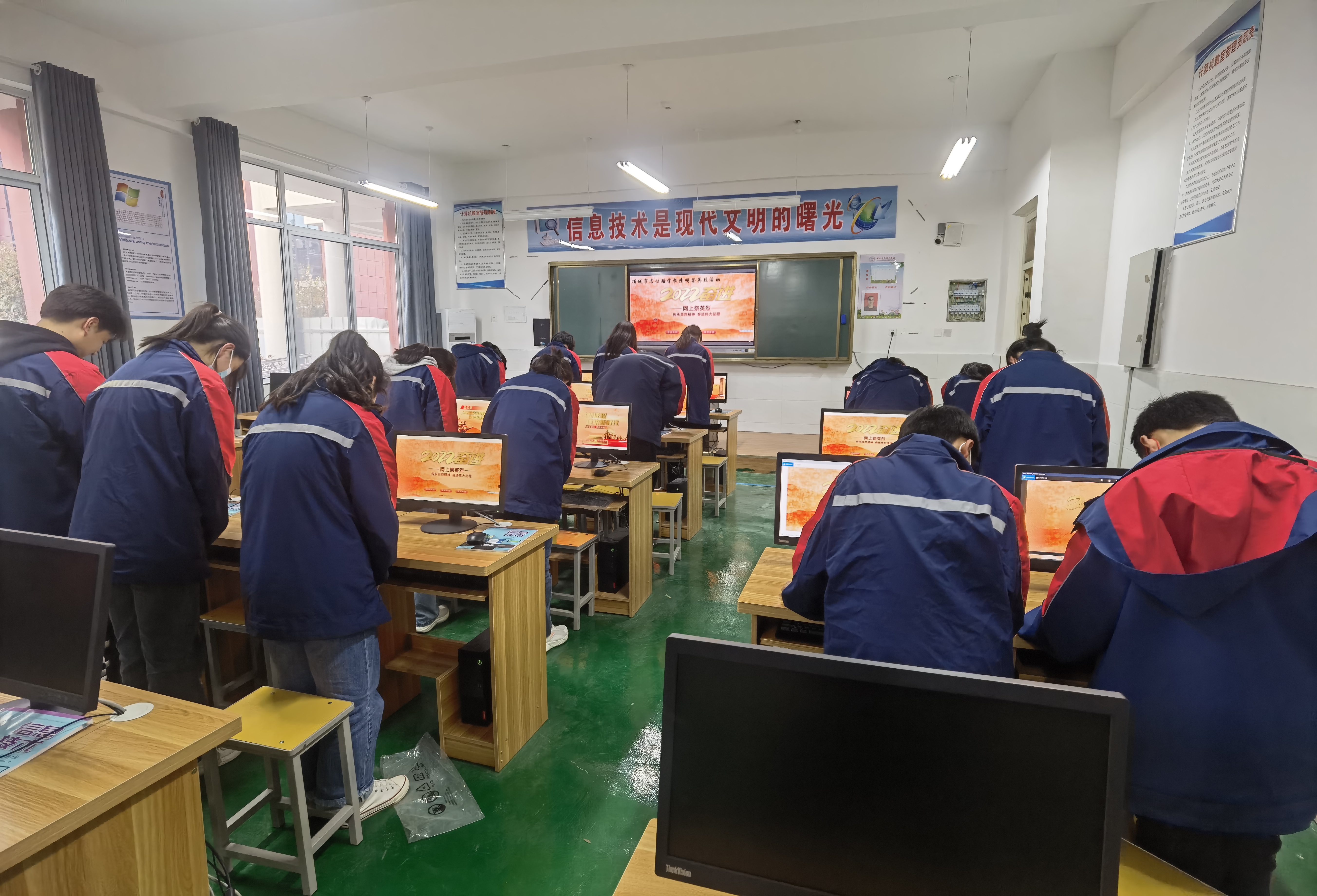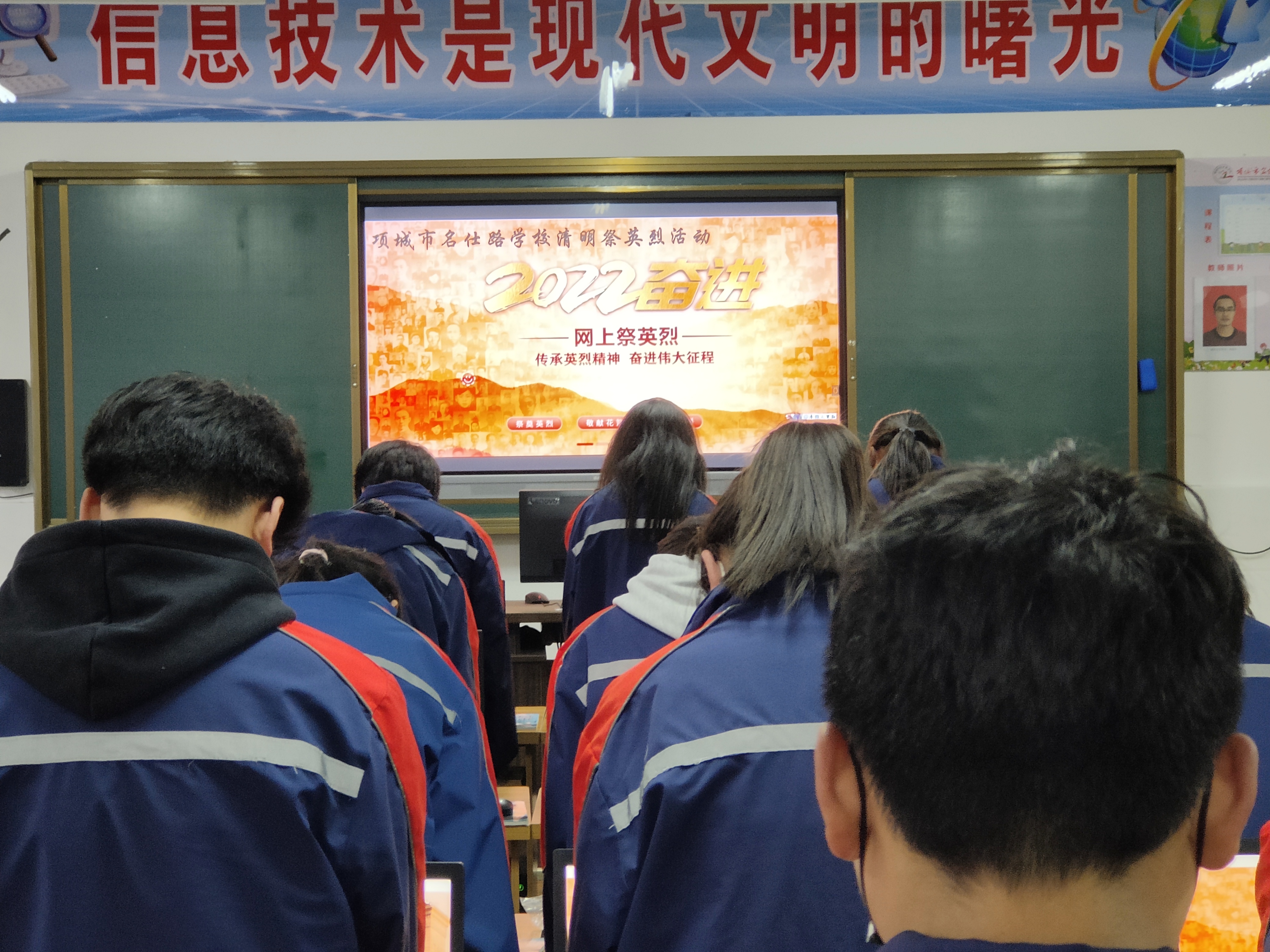 課堂上,在老師的指導(dǎo)下,同學(xué)們打開《中華英烈網(wǎng)》,為自己心目中的英雄點燭、獻(xiàn)花,“緬懷英烈,感恩祖國。”“如今山河已無恙,烈士們安息吧!”“請黨放心,強(qiáng)國有我?!薄瑢W(xué)們紛紛留言表示,要繼承革命先烈遺志,努力學(xué)習(xí),報效祖國。③8