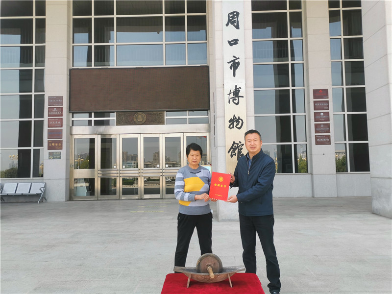 市博物館館長(zhǎng)周建山向葉桂蓮頒發(fā)收藏證書