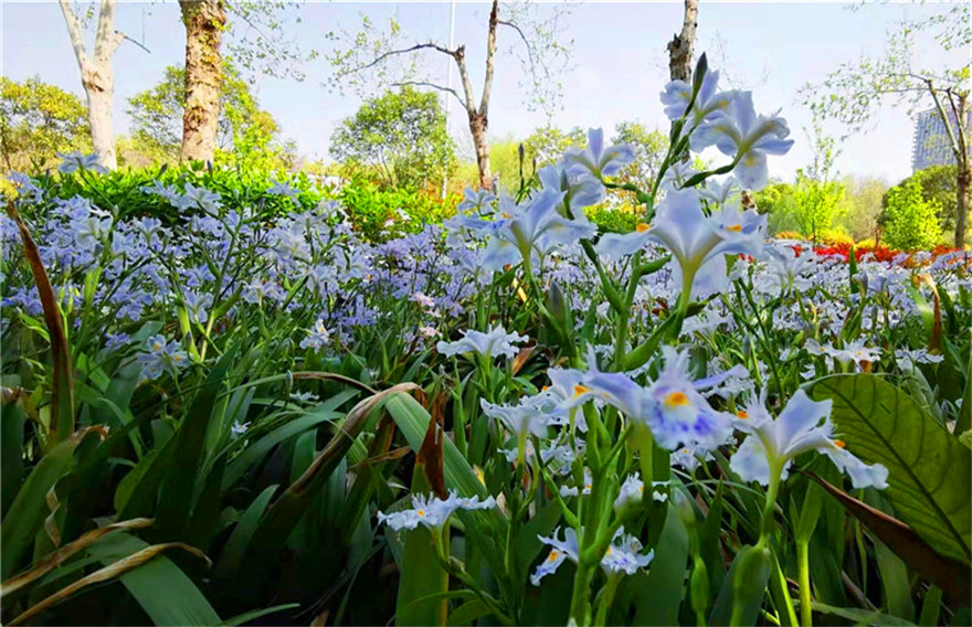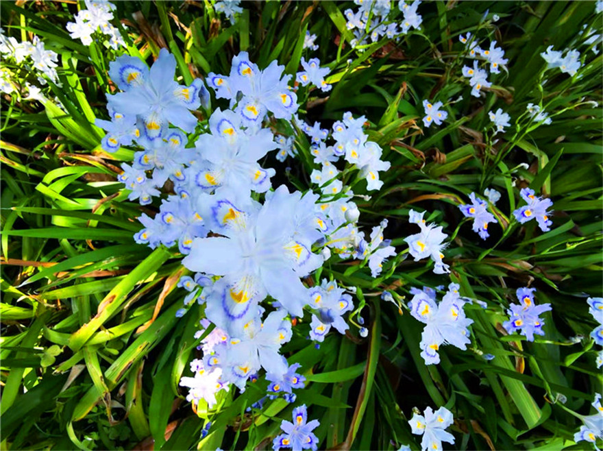 近日,濱河公園的蝴蝶花開了,微風輕撫,如千百只彩蝶在綠葉叢中蹁躚起舞,典雅清麗,清香四溢。②10