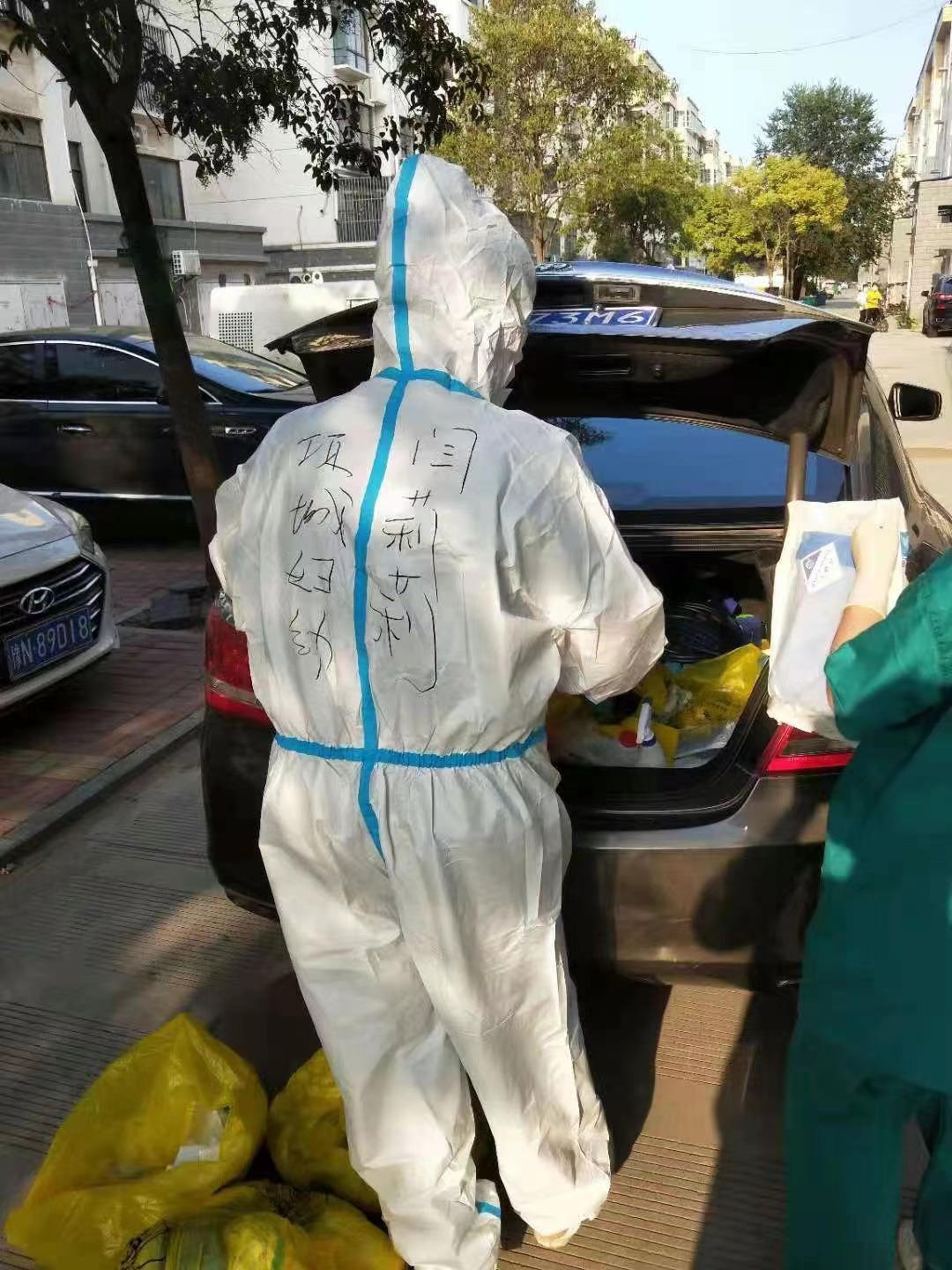 2021年11月,項(xiàng)城市婦幼保健院又一次接到前往扶溝游家村抗疫的通知,閆莉莉再次以逆行者的姿態(tài)前往抗疫前線采集核酸。核酸采樣是一項(xiàng)高強(qiáng)度工作,采集人員身著防護(hù)服后需要連續(xù)幾個小時不喝水、不去廁所。采樣時要手疾眼快、精準(zhǔn)到位,薄薄的乳膠手套每次用冰冷的酒精消毒后都緊緊地貼在手指上,手指都被凍僵了。