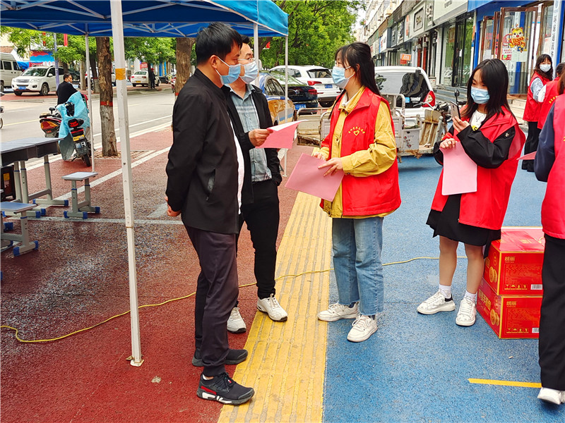 活動(dòng)中,志愿者向新城路、行政路、小吃街等路段沿街商鋪發(fā)放《致全縣商戶的一封信》,講解疫情防控最新形勢和最新政策,提醒沿街商鋪商家落實(shí)好掃“兩碼”、測體溫、出入登記等各項(xiàng)疫情防控措施,引導(dǎo)群眾養(yǎng)成正確佩戴口罩、保持一米線距離等健康防護(hù)習(xí)慣,提醒人員不扎堆不聚集, 用志愿服務(wù)匯聚抗疫力量,筑牢群眾健康屏障。