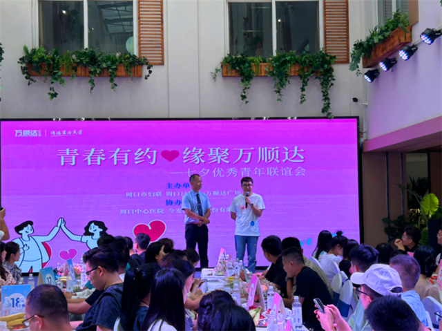• 8月20日,由周口市婦聯(lián)、周口日報社、萬順達(dá)廣場主辦的“青春有約,緣聚萬順達(dá)”優(yōu)秀青年聯(lián)誼會在萬順達(dá)廣場七樓舉行。據(jù)了解,此次聯(lián)誼會吸引了來自周口各行各業(yè)的約200名優(yōu)秀單身男女青年參與。