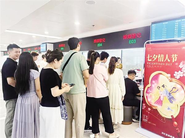 • 8月29日,農(nóng)歷七月初七,是中國傳統(tǒng)節(jié)日七夕節(jié)。這個承載著牛郎織女美麗傳說的日子,成為許多新人眼中領(lǐng)取結(jié)婚證的“良辰吉日”。當(dāng)天,川匯區(qū)民政局婚姻登記處迎來今年又一個結(jié)婚登記高峰,不少新人選擇在這個極具浪漫色彩的日子邁入婚姻殿堂。