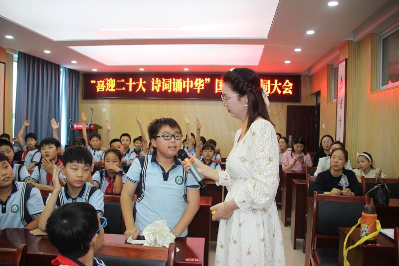 為迎接黨的二十大勝利召開、新中國成立73周年,進(jìn)一步促進(jìn)優(yōu)秀傳統(tǒng)文化進(jìn)校園,9月28日,經(jīng)開區(qū)蓮花路小學(xué)舉行“喜迎二十大,詩詞誦中華”國慶節(jié)詩詞大會。廣大學(xué)子積極參與其中,歌頌祖國,謳歌時(shí)代,以實(shí)際行動續(xù)寫新時(shí)代的“詩與遠(yuǎn)方”。