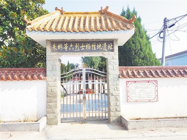 朱彬等六烈士犧牲地遺址,緊挨著王路口行政村文化廣場,現(xiàn)在已是沈丘縣縣級文物保護單位,里面蒼松翠柏,建有紀念亭,立有紀念碑。當?shù)卮迕襁€有一個愿望,準備為朱彬立一座石刻雕像,在周圍的墻壁上畫上朱彬騎馬戰(zhàn)斗的情景,將這里打造成一個紅色景點,開發(fā)為黨史教育基地,供群眾憑吊、瞻仰。