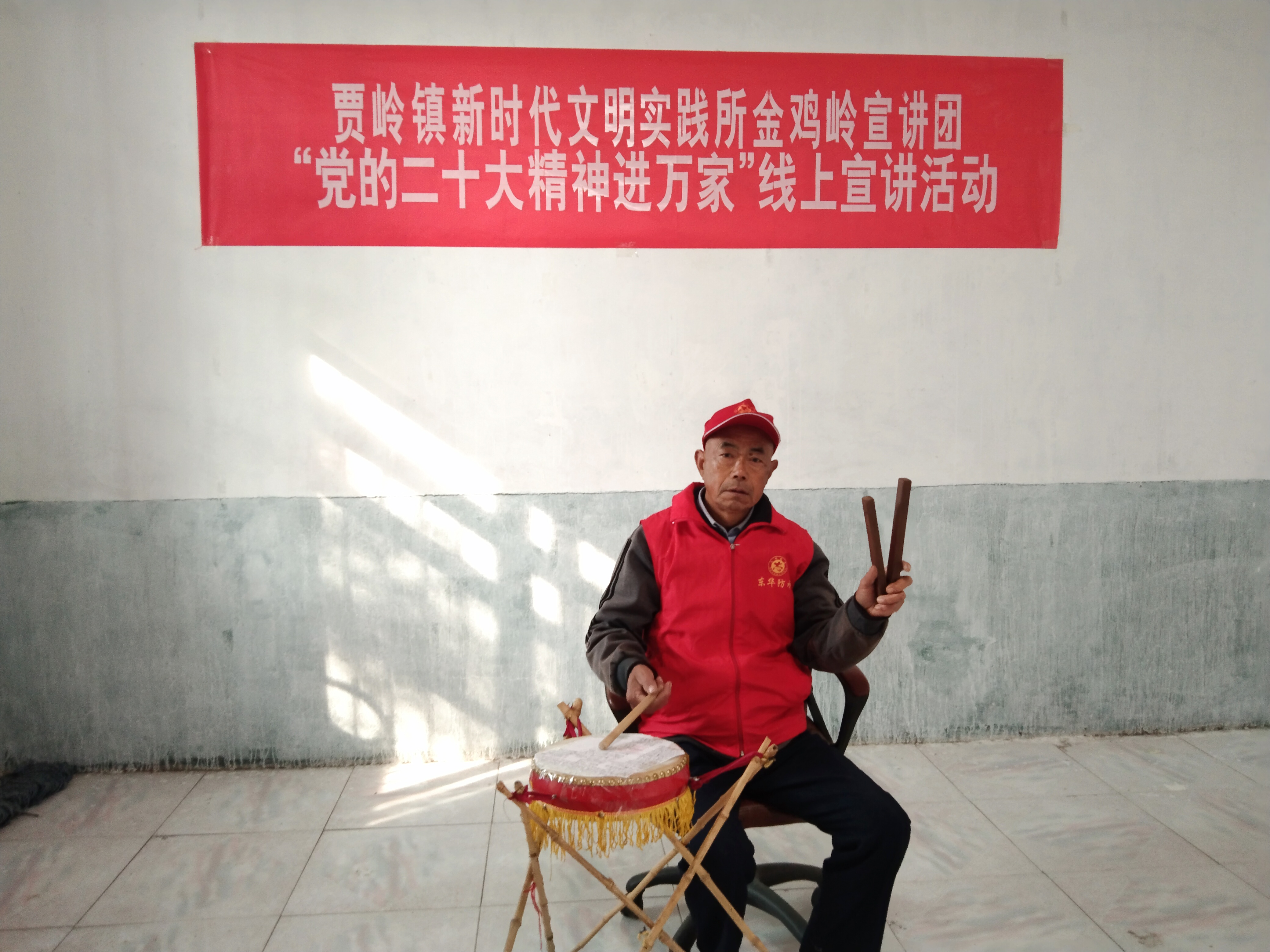 • 近日,項(xiàng)城市賈嶺鎮(zhèn)新時(shí)代文明實(shí)踐所金雞嶺宣講團(tuán)志愿者、七旬老人閆汝才閑暇就會(huì)坐在一張凳子上,一手敲鼓、一手夾板,配合唱腔、道白,利用非遺“大鼓書(shū)”藝術(shù)表演形式,通過(guò)抖音平臺(tái)在線上宣傳黨的二十大精神。