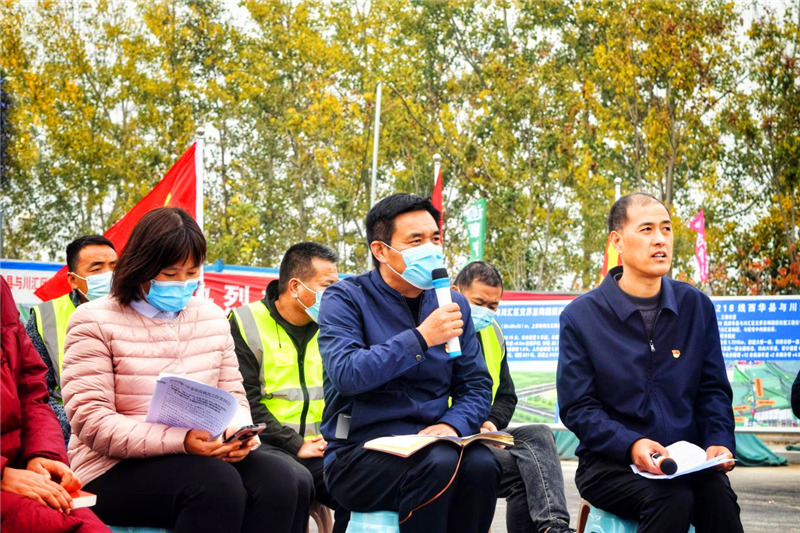 黨旗迎風(fēng)飄揚(yáng),機(jī)器轟鳴作響,伴隨著壓路機(jī)、挖土機(jī)等施工機(jī)械的作業(yè)聲,周口市公路系統(tǒng)職工在項目施工現(xiàn)場學(xué)習(xí)黨的二十大精神成為一道亮麗的風(fēng)景。