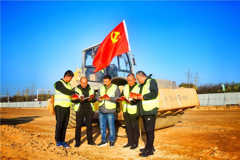 黨旗迎風飄揚,機器轟鳴作響,伴隨著壓路機、挖土機等施工機械的作業(yè)聲,周口市公路系統(tǒng)職工在項目施工現(xiàn)場學習黨的二十大精神成為一道亮麗的風景。