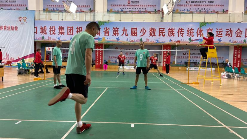 扣殺、挑球、倒鉤、跳踢……在第九屆全省民族運(yùn)動會毽球比賽的熱身場上,運(yùn)動員們熟練地踢著毽子,小小毽球在球網(wǎng)上凌空穿梭,上下翻飛。周口毽球代表隊(duì)運(yùn)動員高紅山腳蹬舒適軟底毽球鞋,在隊(duì)友們的默契配合下,毽球上下翻轉(zhuǎn),不時甩出一道道完美的拋物線。