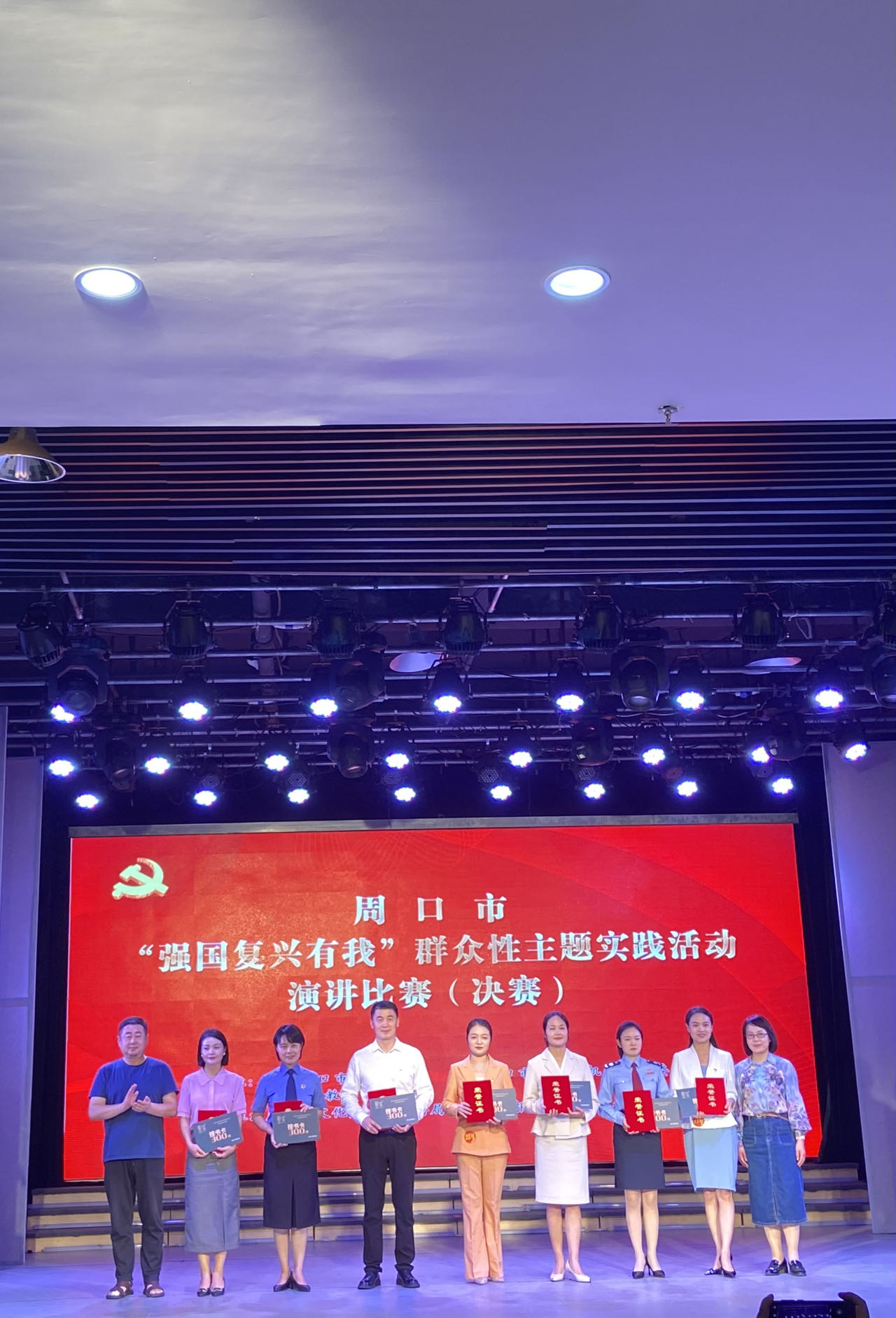 決賽過程中,選手立足中國式現(xiàn)代化全面推進(jìn)中華民族偉大復(fù)興的廣闊征程, 以各自學(xué)習(xí)、工作、生活為視角,以微故事、微黨課、微講述為主要方式,用飽滿的熱情講述了學(xué)習(xí)宣傳貫徹黨的二十大精神的個(gè)人感悟、具體實(shí)踐;講述了錨定“兩個(gè)確?!?,實(shí)施 “ 十大戰(zhàn)略”,推進(jìn)中國式現(xiàn)代化周口實(shí)踐的實(shí)際行動(dòng);講述了繁榮發(fā)展文化事業(yè),深入實(shí)施文旅文創(chuàng)融合戰(zhàn)略周口實(shí)踐之“我”的認(rèn)識(shí)。選手們情感充沛、慷慨激昂,“強(qiáng)國有我 請(qǐng)黨放心”的口號(hào)鏗鏘有力,響徹劇場,展示了一代周口青年奮力譜寫中國式現(xiàn)代化周口絢麗篇章的信心和決心。