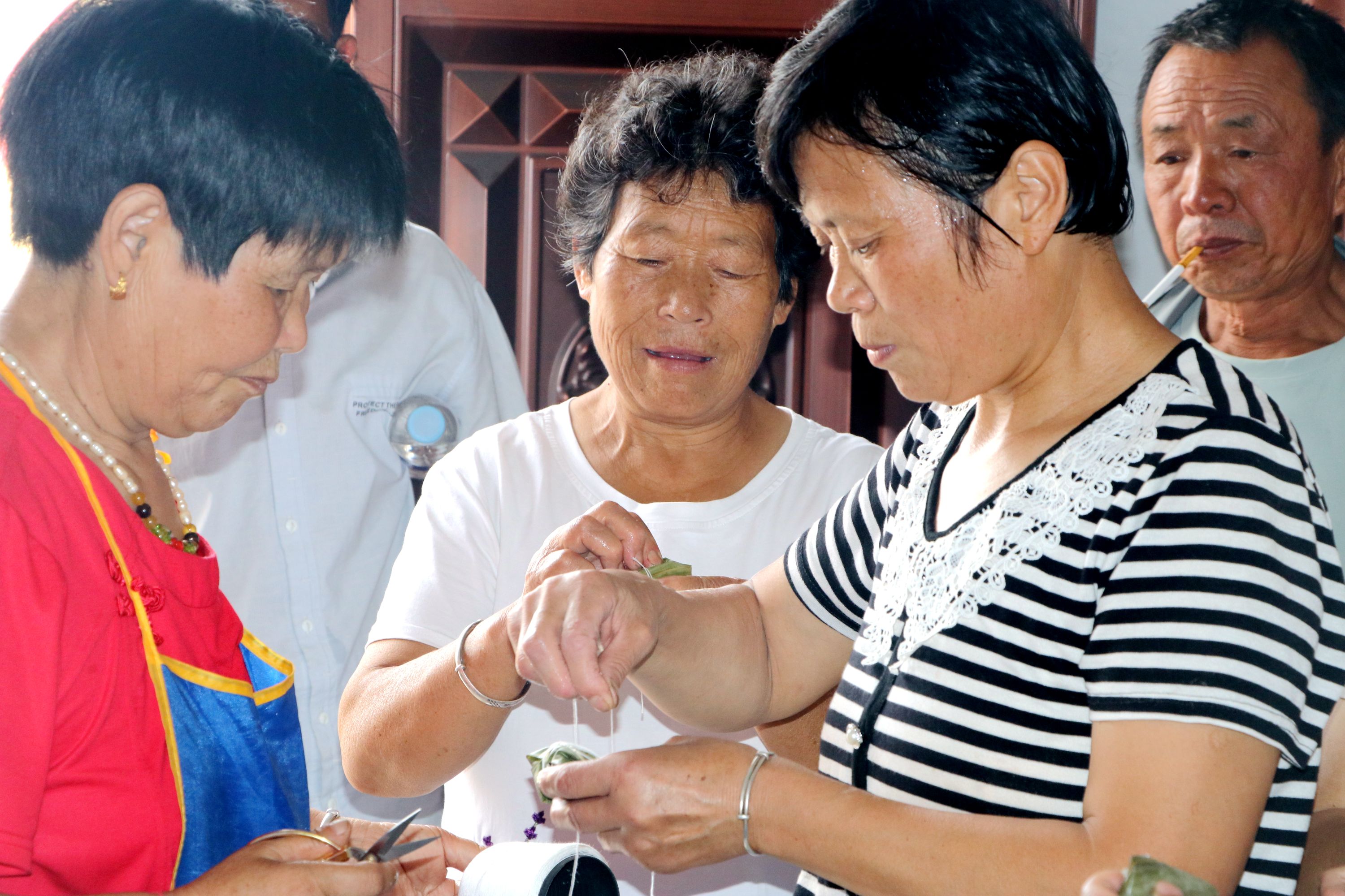 一大早,宋福利就組織村“兩委”成員將泡好的糯米、紅豆、蜜棗、粽葉等材料整齊地擺放在桌子上,做好包粽子準備工作。活動一開始,大家就迅速進入包粽子狀態(tài),圍在一起,使出看家本領(lǐng),捋粽葉、做漏斗狀、填糯米、壓緊實、封口、扎捆……在粽葉翻飛、米香四溢中,翠綠的粽葉和晶瑩的糯米在一雙雙巧手中瞬間變成了一個個清香誘人的粽子。大家一邊包粽子,一邊嘮家常,說著、笑著,一片融洽和諧。經(jīng)過1個多小時的辛勤勞作,粽子包好了,宋福利和老人們把包好的粽子分成若干份,送給村里行走不便的低保戶、獨居老人、“五?!崩先?,并與他們進行交談,了解他們近期的生活情況,叮囑他們保重身體。