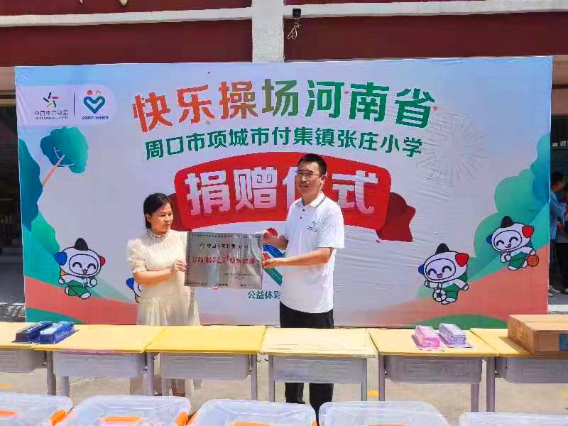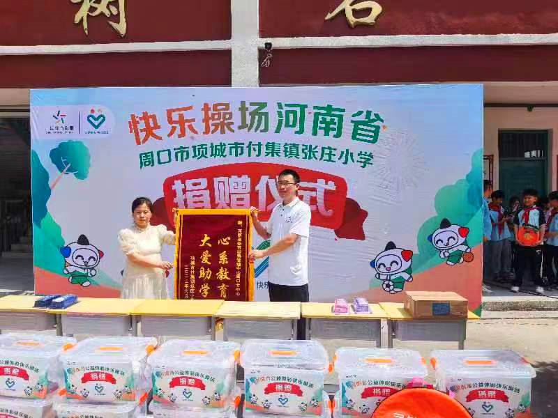 “公益體彩獻(xiàn)愛心,快樂操場進(jìn)校園”。6月20日,“公益體彩 快樂操場”走進(jìn)項(xiàng)城市付集鎮(zhèn)張莊小學(xué)開展公益捐贈活動。學(xué)校負(fù)責(zé)人將錦旗送到周口體彩分中心副主任孫海永手中,對該中心的善舉表達(dá)了衷心感謝。