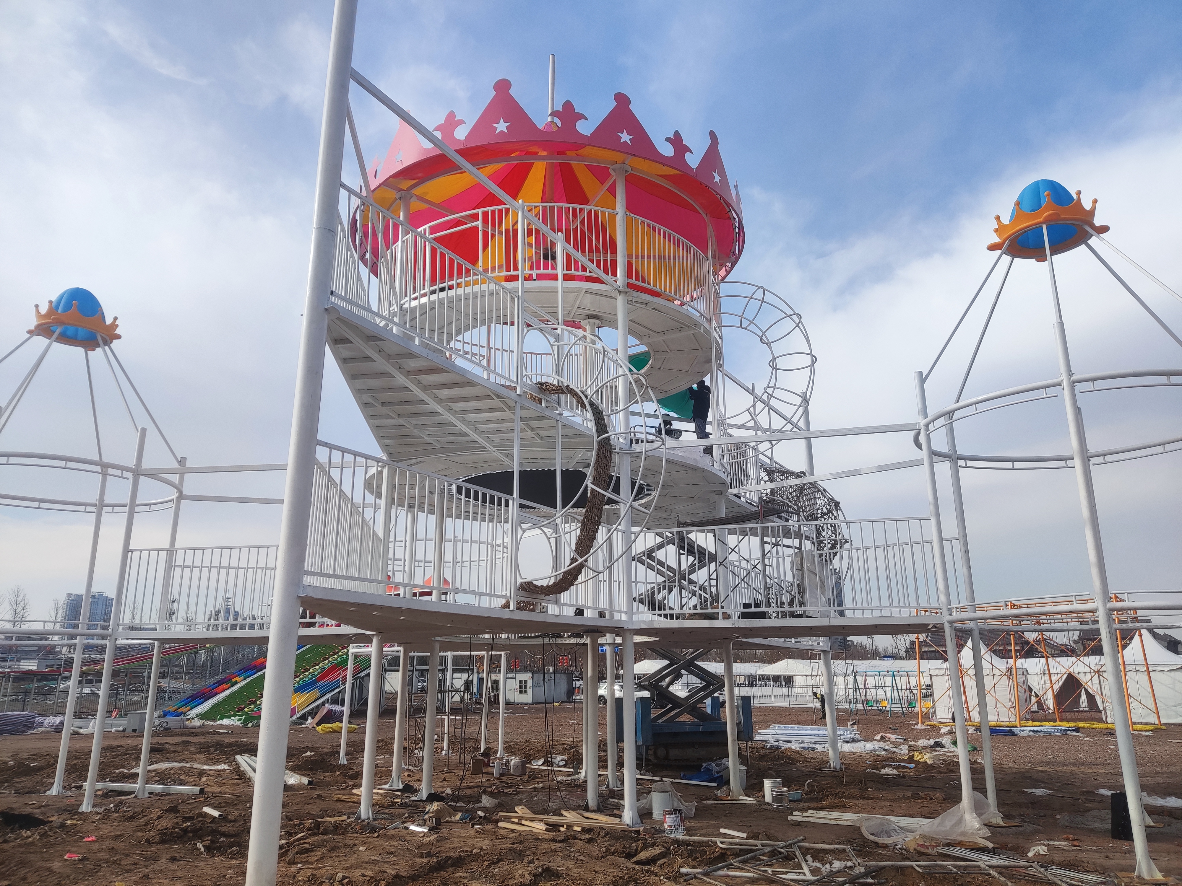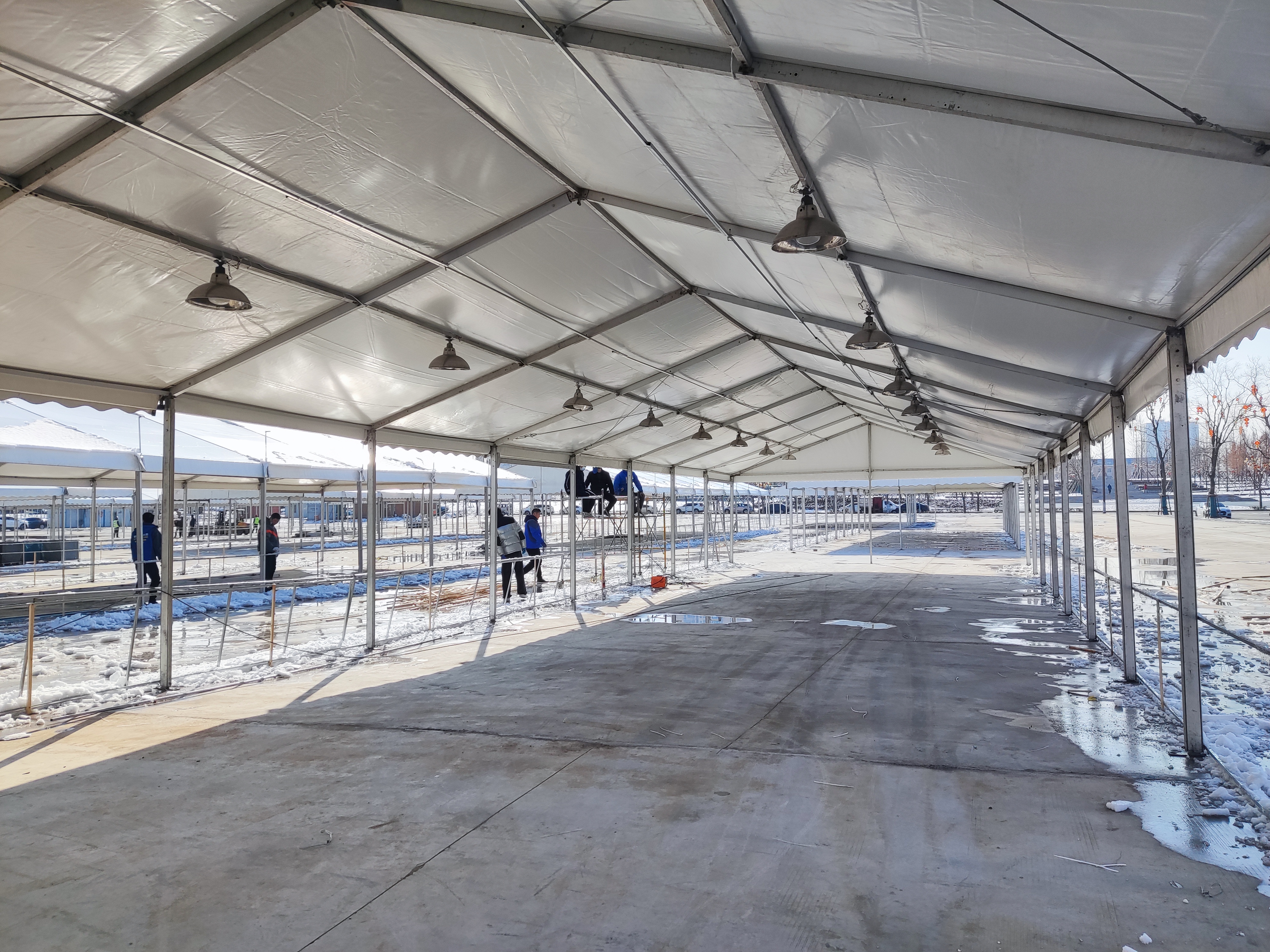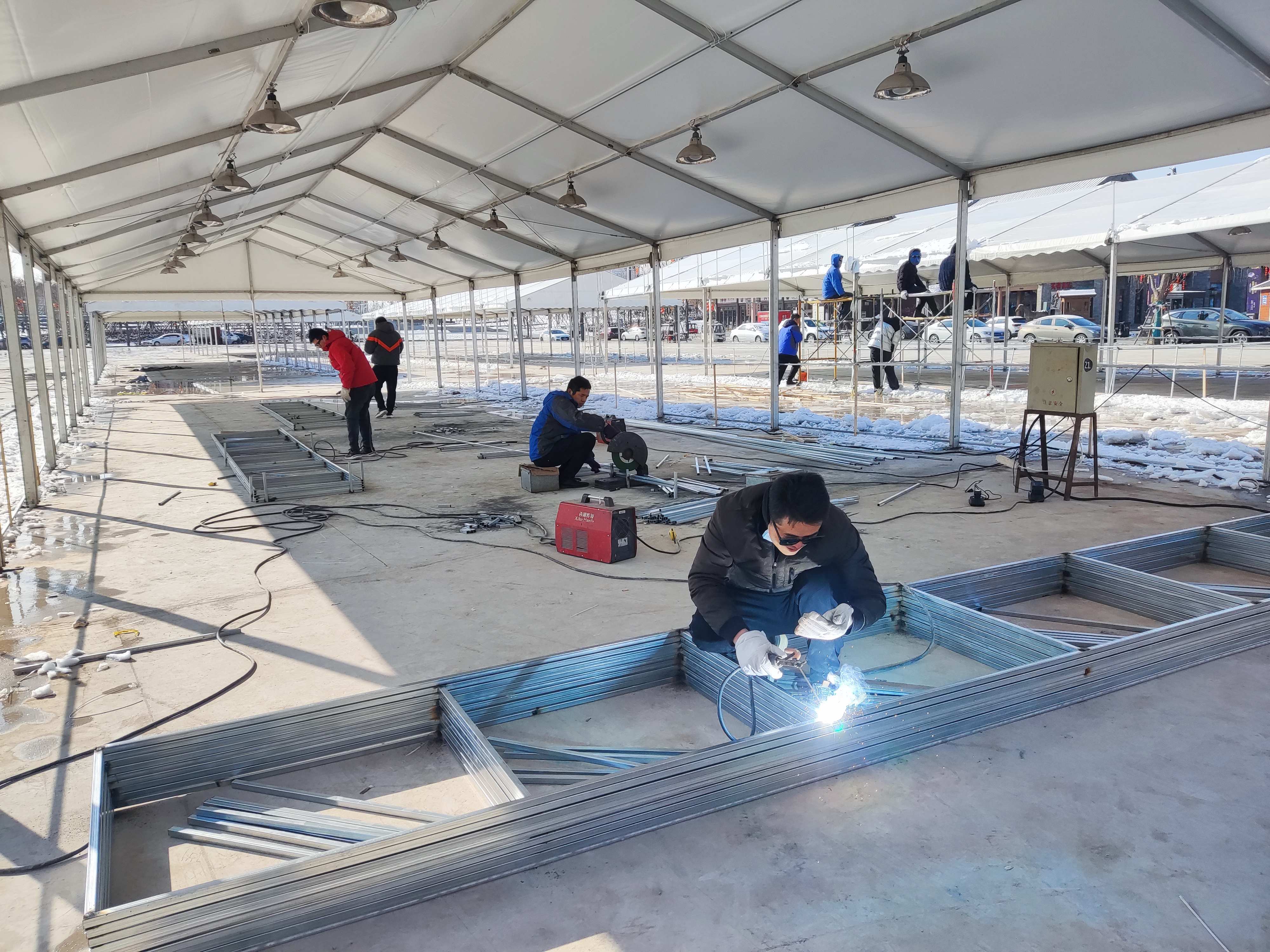 1月23日記者在現(xiàn)場(chǎng)看到,展區(qū)大篷內(nèi),工人正在做水電安裝、焊接等掃尾工作。