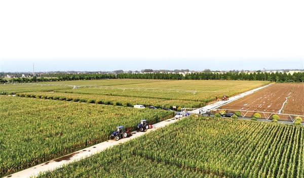 近日,鄲城縣積極組織機(jī)械入田搶收秋糧,確保秋糧顆粒歸倉。記者 徐松 攝