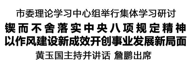本報訊(記者 王艷) 1月16日,市委理論學習中心組舉行集體學習研討,深入學習貫徹習近平新時代中國特色社會主義思想,全面貫徹落實黨的二十屆四中全會精神,以打攻堅戰(zhàn)、持久戰(zhàn)的決心和恒心,鍥而不舍落實中央八項規(guī)定精神,推進作風建設常態(tài)化長效化,以優(yōu)良作風凝心聚力、真抓實干,為開好民主生活會打牢思想基礎。市委書記黃玉國主持并講話。市長詹鵬出席。