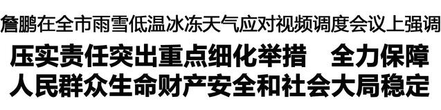 本報(bào)訊 (記者 李鳳霞) 1月18日,市長(zhǎng)詹鵬主持召開全市雨雪低溫冰凍天氣應(yīng)對(duì)視頻調(diào)度會(huì)議,強(qiáng)調(diào)要深入學(xué)習(xí)貫徹習(xí)近平總書記關(guān)于防災(zāi)減災(zāi)救災(zāi)的重要指示精神,貫徹落實(shí)省委和市委決策部署,以“時(shí)時(shí)放心不下”的責(zé)任感,扎實(shí)有效應(yīng)對(duì)雨雪低溫冰凍天氣,確保人民群眾生命財(cái)產(chǎn)安全和社會(huì)大局和諧穩(wěn)定??钻?yáng)、朱向陽(yáng)、張建黨、程若光、王文峰出席會(huì)議。