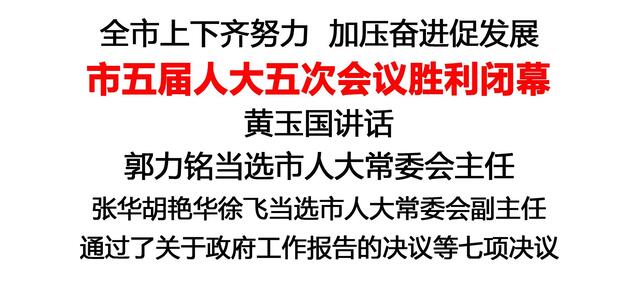 根據(jù)選舉結(jié)果,郭力銘當(dāng)選周口市第五屆人民代表大會(huì)常務(wù)委員會(huì)主任,張華、胡艷華、徐飛當(dāng)選周口市第五屆人民代表大會(huì)常務(wù)委員會(huì)副主任,胡東河當(dāng)選周口市第五屆人民代表大會(huì)常務(wù)委員會(huì)秘書長,王軍、郝強(qiáng)、段然、賈衛(wèi)東當(dāng)選周口市第五屆人民代表大會(huì)常務(wù)委員會(huì)委員。