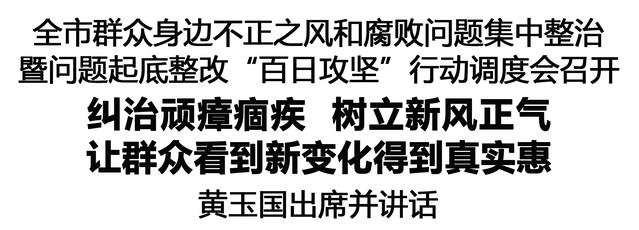 本報訊(記者 王艷 李瑞才)2月27日,全市群眾身邊不正之風(fēng)和腐敗問題集中整治暨問題起底整改“百日攻堅(jiān)”行動調(diào)度會召開,認(rèn)真貫徹中央紀(jì)委國家監(jiān)委部署,落實(shí)全省群眾身邊不正之風(fēng)和腐敗問題集中整治總結(jié)暨2026年動員部署會議要求,調(diào)度“百日攻堅(jiān)”行動,部署2026年工作,聚力攻堅(jiān)、決戰(zhàn)決勝集中整治,不斷推動全面從嚴(yán)治黨向基層延伸,讓群眾看到新變化、得到真實(shí)惠。市委書記黃玉國出席并講話。