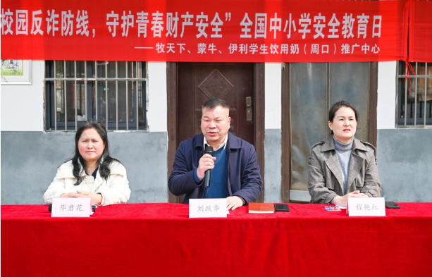 2026年3月31日上午,在全國中小學(xué)安全教育日來臨之際,由牧天下、蒙牛、伊利學(xué)生飲用奶(周口)推廣中心主辦的“筑牢校園反詐防線,守護(hù)青春財(cái)產(chǎn)安全”反詐安全教育主題活動在項(xiàng)城市花園辦事處鄭埠口小學(xué)舉行?;▓@辦事處轄區(qū)民警鄺柯柯出席活動,花園辦事處中心校校長劉躍華,鄭埠口小學(xué)校長程艷紅、副校長畢君花,牧天下、蒙牛、伊利學(xué)生飲用奶(周口)推廣中心副總經(jīng)理何俊濤、(項(xiàng)城)推廣中心市場經(jīng)理劉璐及鄭埠口小學(xué)師生代表參加。