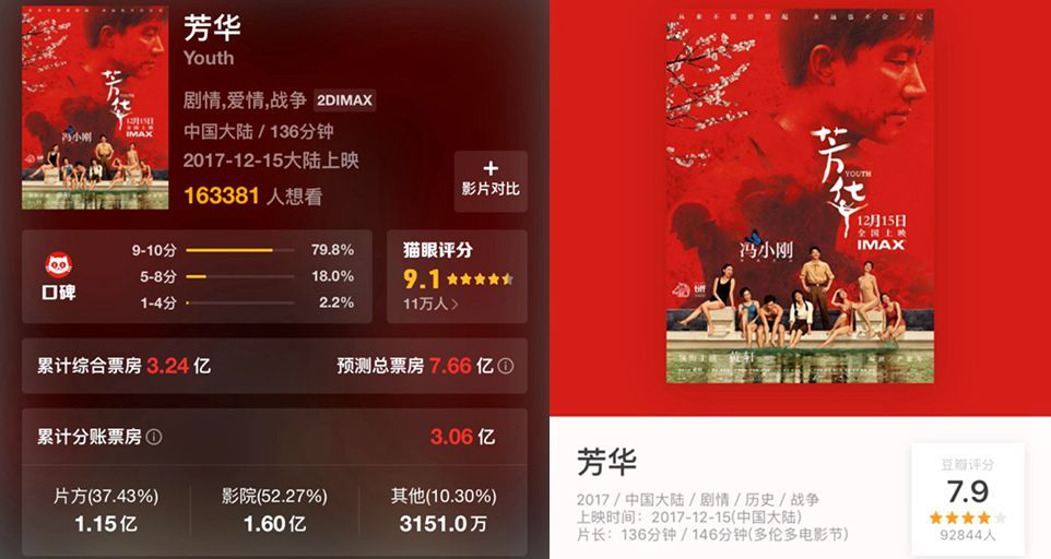 國慶檔因為片子太多,除了《羞羞的鐵拳》遙遙領先外,口碑不錯的《英倫對決》、《追龍》、《縫紉機樂隊》的票房都遭到了擠壓。熱度很高的《空天獵》也一樣。最終,這五部電影的票房分別是20.07億、5.38億、5.75億、4.57億、3.18億?!?a href="http://m.thebachelorsreview.com/content/2017-12/18/content_604326.htm" target="_blank" >[詳細]