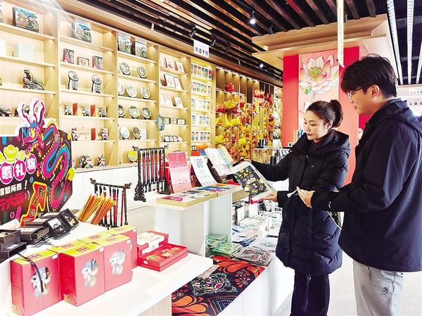 12月18日,在太昊伏羲陵文化旅游區(qū)旅游產(chǎn)品展廳,游客在欣賞非遺手工產(chǎn)品。近年來,太昊伏羲始祖旅游區(qū)運營管理有限公司為豐富游客體驗,聚焦非遺手工、潮玩手辦等主題,開發(fā)了近百個旅游新產(chǎn)品,以滿足游客多元化需求。 ...[詳細(xì)]