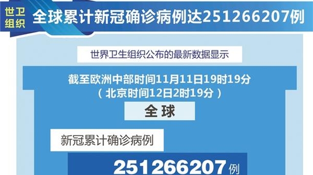 世衛(wèi)組織全球累計新冠確診病例達(dá)251266207例 ……[詳細(xì)]